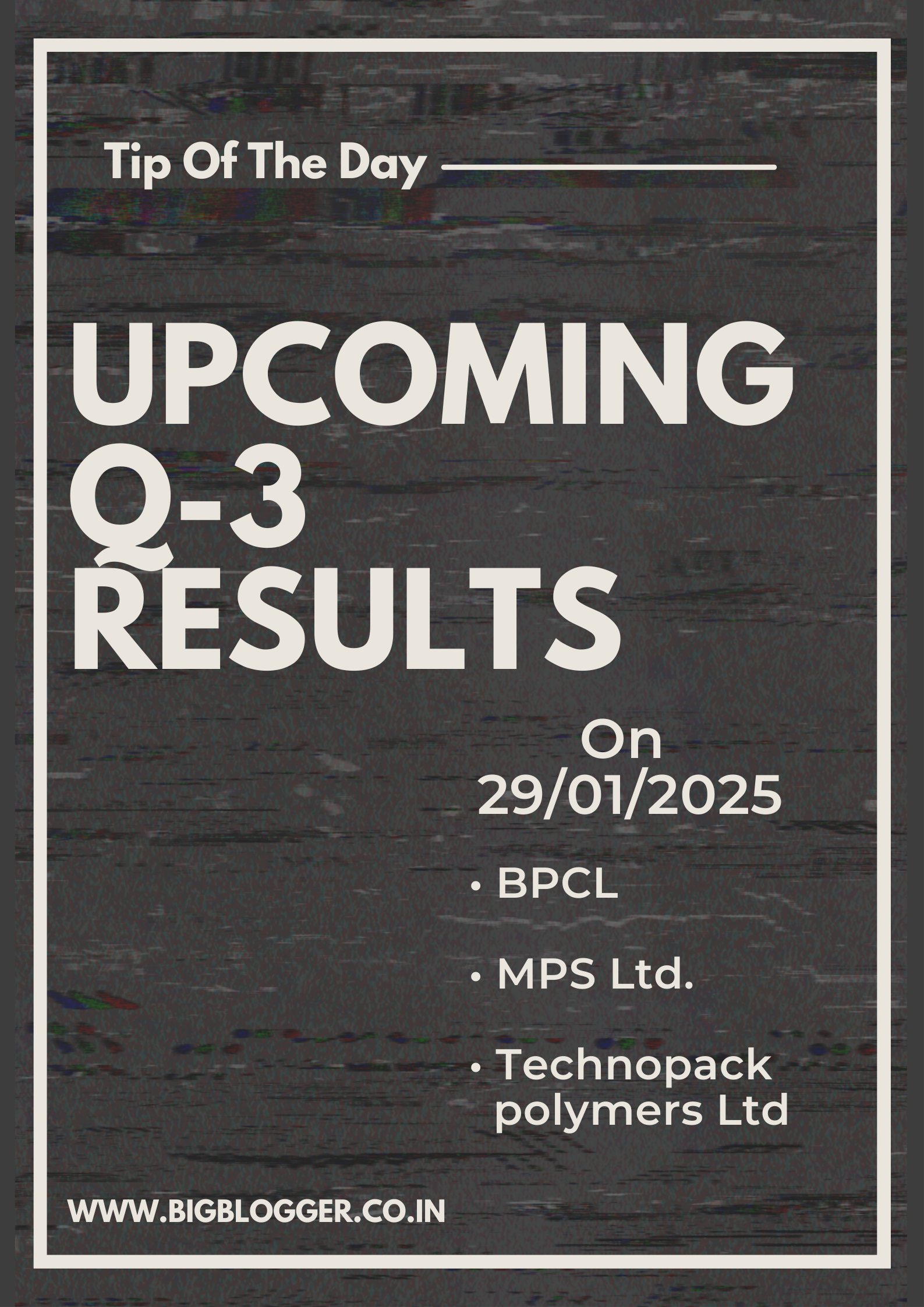 The third quarter (Q3) results for Bharat Petroleum Corporation Limited (BPCL), MPS Ltd., and Technopack